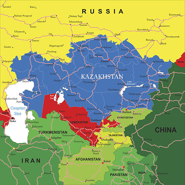 Map Of A Part Of The Asian Continent Centered In Kazakhstan Stock